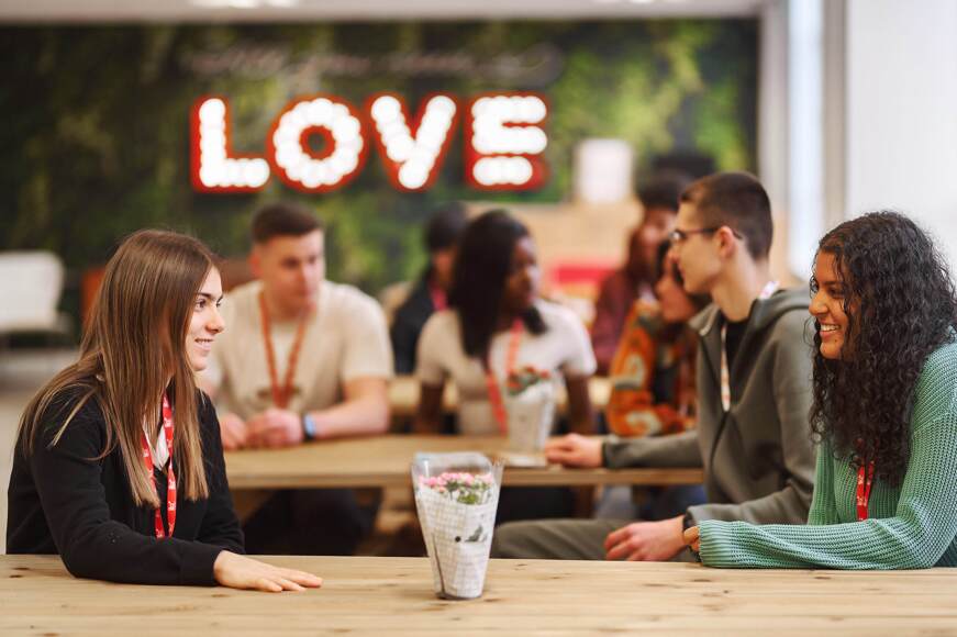 At 4,500 square metres, the purpose-built, design-led College is filled with natural light and an airy open-plan design. The inspiring learning environment is filled with art and each classroom has an individual theme centred around the culture and heritage of Liverpool. Two large common rooms are equipped with kitchen areas, a ping pong table, a foosball table and large screen Smart TVs perfect for students to relax and make friends.